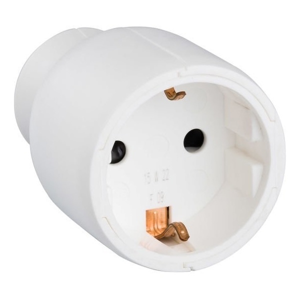 Пластиковая розетка с прямым вводом (50189) белого цвета с двумя контактами и заземлением на 16 Ампер 050189