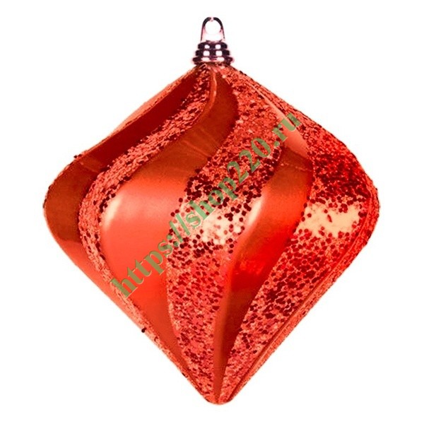 Описание: Общий вид новогодней декоративной фигуры «Алмаз» - объемная полая внутри форма в виде двух конусов противоположной направленности с общим основанием. Фигура оборудована специальным элементом (выступающая в верхнем сегменте втулка), в который встраивается металлический подвес. Поверхность покрывают зигзагообразные полосы вертикальной направленности с последовательным чередованием – глянцевая/с блестками.