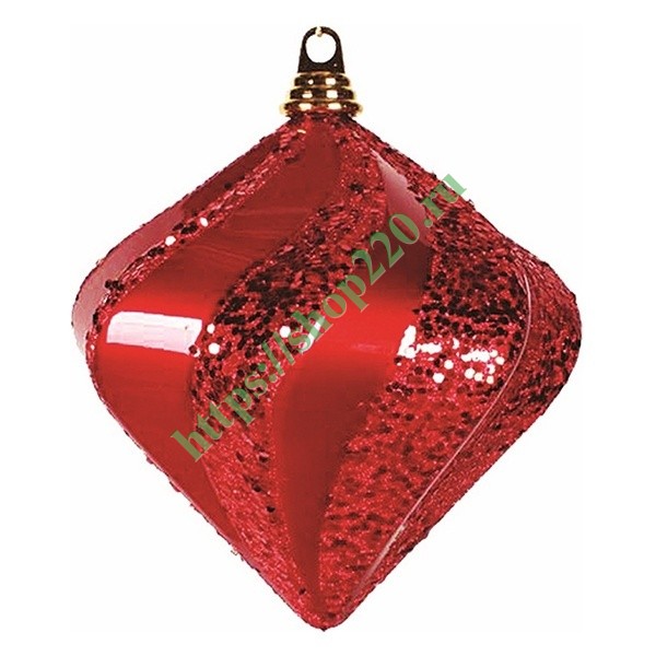 Описание: Новогодняя фигура в форме большого алмаза. Поверхность фигуры имеет вертикальные зигзаги глянцевой и матовой фактуры. Матовые фрагменты усыпаны блестками, которые отражая лучи света, создают искристое сияние. Верхняя часть фигуры завершается специальной втулкой, которая оснащается креплением для подвеса.