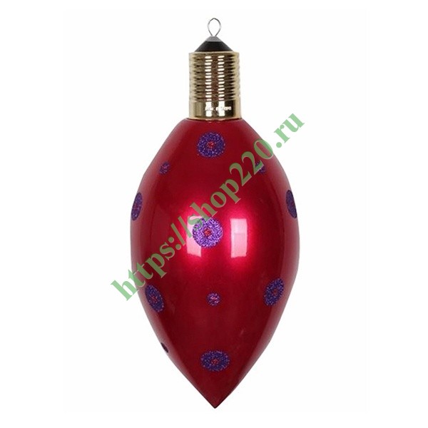 «Клубничка» без свечения оформлена в яркий бордовый цвет с фиолетовыми узорами. Игрушка изготовлена из качественного пластика, который имеет высокую морозоустойчивость. Не разбивается при падении. Не боится воздействия атмосферных осадков и других механических воздействий. Может эксплуатироваться при температуре -40/+50 градусов. Предназначается для украшения большой елки в помещении и на улице.