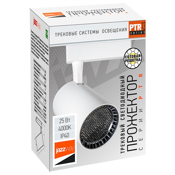 • Трековый светодиодный светильник JazzWay PTR 1325 25W 4000K 24° WH белый с сотовой решеткой IP40