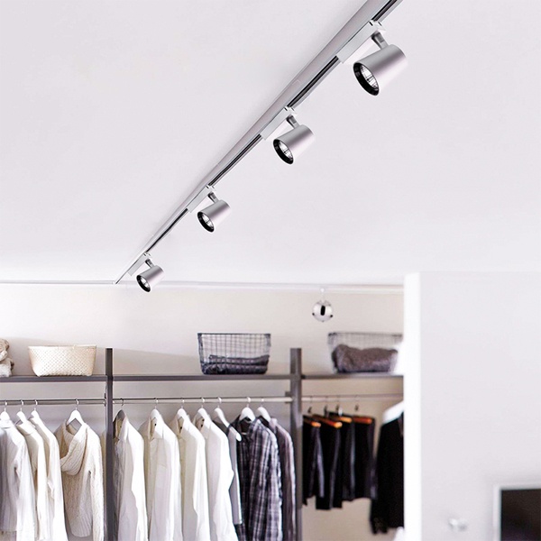 - Конструкция трековой системы обеспечивает перемещение прожекторов вдоль трека, что позволяет изменять направление света и уровень освещенности различных зон.