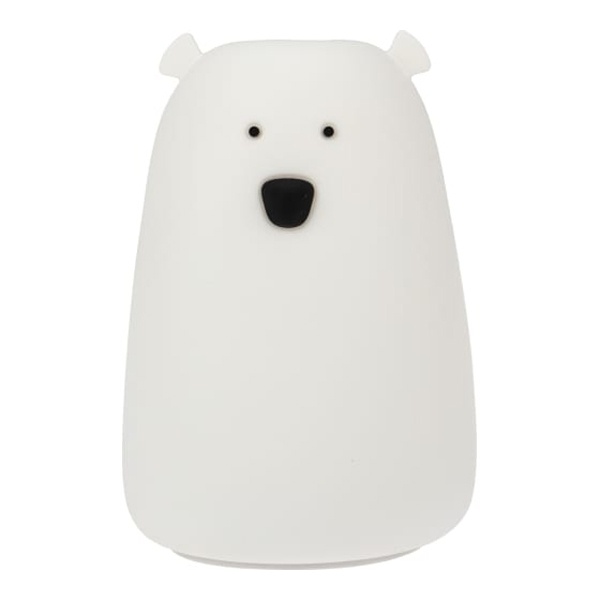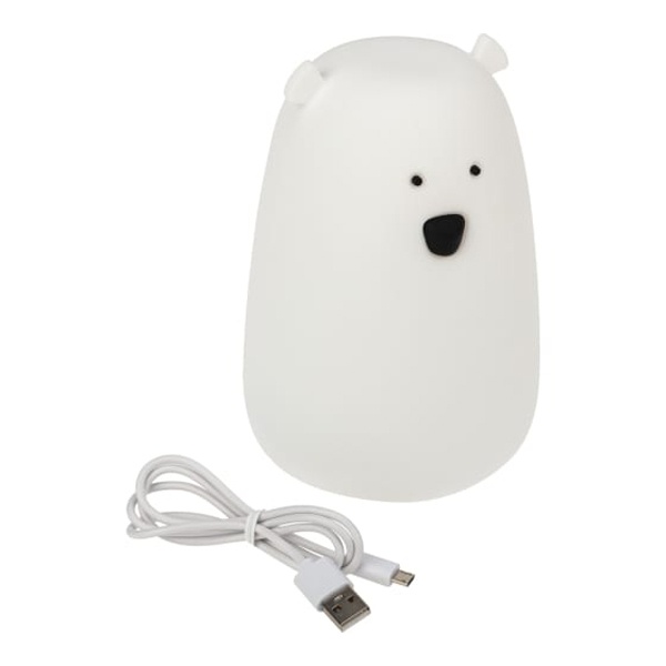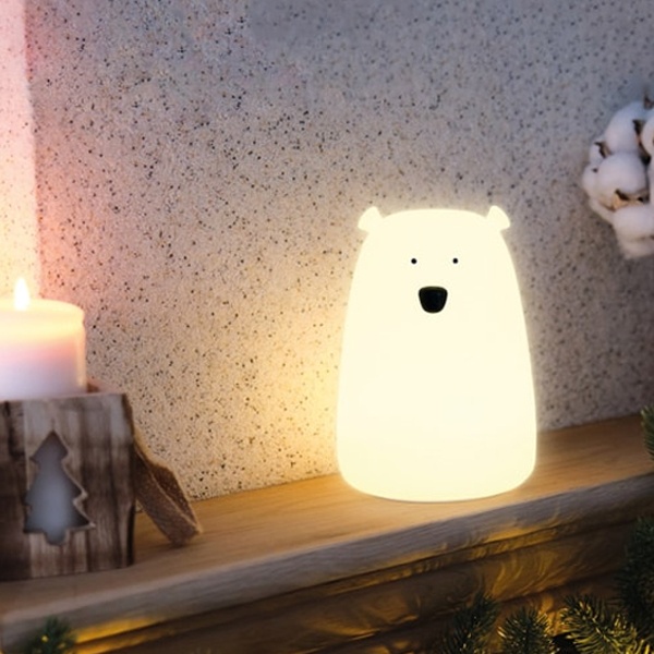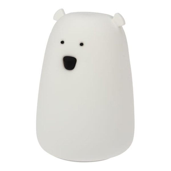 Приятный силиконовый материал и забавный дизайн ночника Медведь не оставят равнодушными ни взрослых, ни детей. Теплое белое свечение поможет малышу комфортно и быстро уснуть, а плавная смена ярких цветов поднимет настроение и преобразит любой интерьер. Смена цвета свечения производится легким хлопком по ночнику, второй хлопок позволит сохранить выбранное свечение. Благодаря материалу и конструкции светильника, его можно ронять, кидать и мять.Переключение цвета свечения на режим RGB – легким хлопком по корпусу. Второй хлопок фиксирует выбранный цвет: любой из RGB-спектра (256 цветов). Третий хлопок выключит ночник.