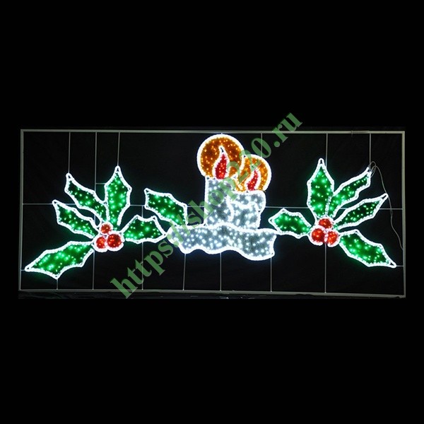 Фигура световая "Две свечи"", выполненная из светодиодного дюралайта, – отличный элемент в составе праздничного светового дизайна. Относится к категории светодиодных фигур для улиц. Новогодняя фигура из дюралайта может быть использована в оформлении мест, предназначенных для массовых народных гуляний, а также для украшения фасадов официальных и общественных зданий, развлекательных комплексов.