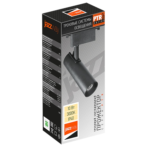 Черный цилиндрический поворотный LED светильник для трековых систем JazzWay PTR 06, с углом рассеивания 24 градуса, мощность 10Вт, теплого света 5035676