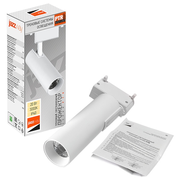 Трековый светодиодный светильник JazzWay PTR 0620 20W 3000K 24° WH белый IP40 5035775