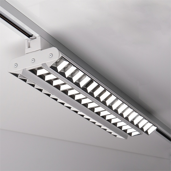 - Конструкция трековой системы обеспечивает перемещение прожекторов вдоль трека, что позволяет изменять направление света и уровень освещенности различных зон.