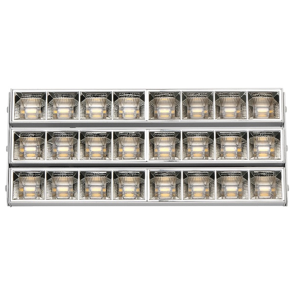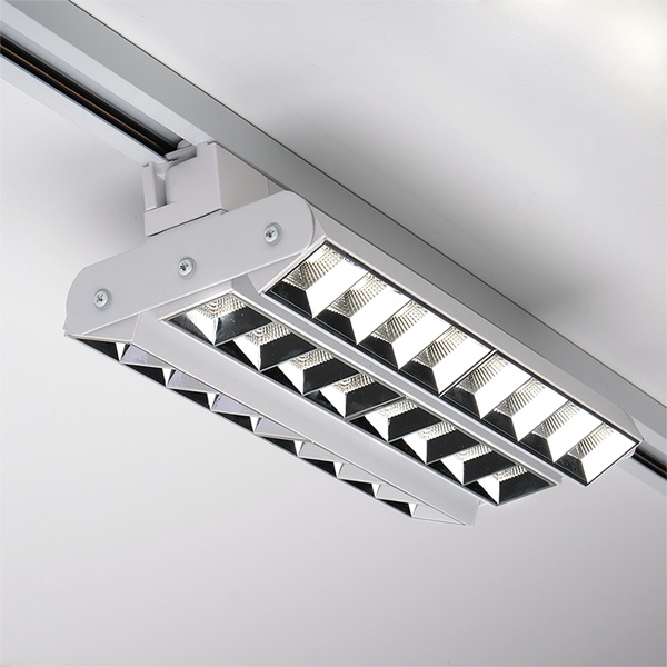 - Конструкция трековой системы обеспечивает перемещение прожекторов вдоль трека, что позволяет изменять направление света и уровень освещенности различных зон.