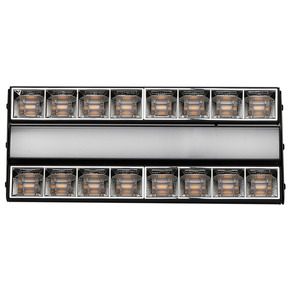 • Конструкция трековой системы обеспечивает перемещение прожекторов вдоль трека, что позволяет изменять направление света и уровень освещенности различных зон.