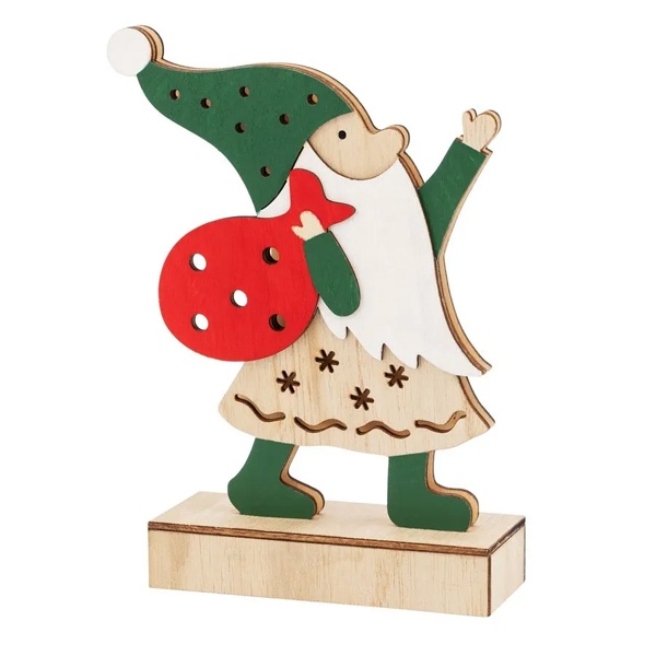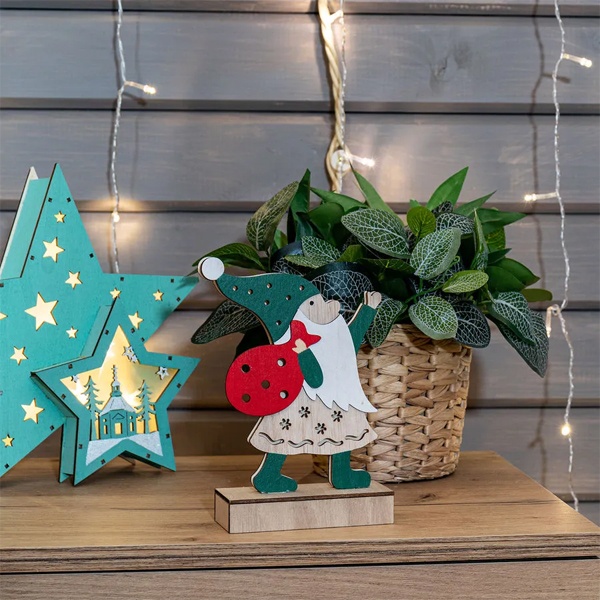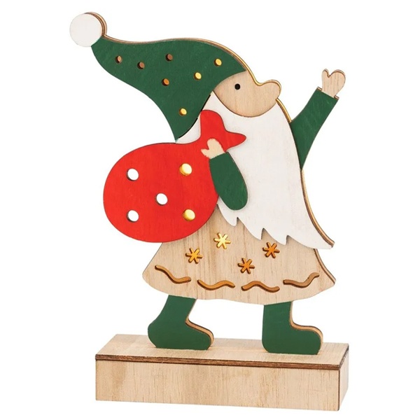 Деревянное светодиодное украшение Дед Мороз тёплого белого свечения, на батарейке 504-016