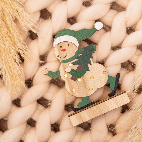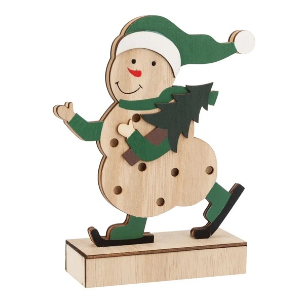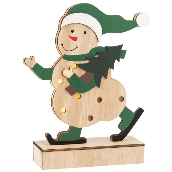 Деревянное светодиодное украшение Снеговик тёплого белого свечения, на батарейке 504-017