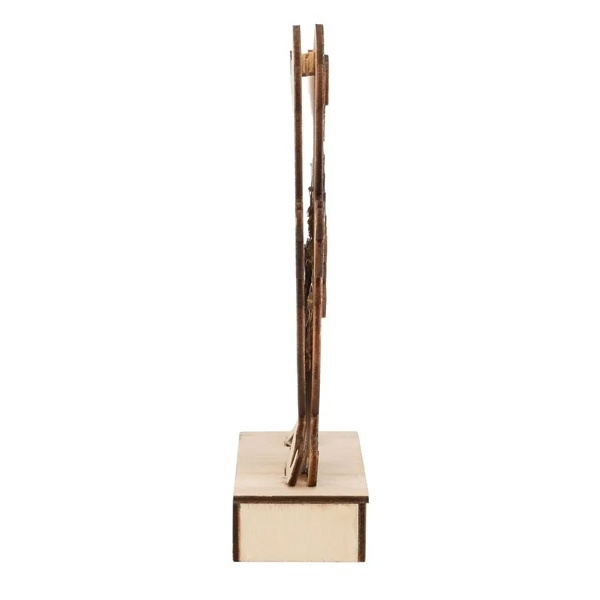 Деревянная фигурка под названием "Снеговик" с высотой в 18 см изготовлена в форме очаровательного персонажа, являющегося одним из главных символов Нового года. У этого улыбающегося снеговика, находящегося в дружелюбном жесте, есть в руках маленькая елка. Эта композиция наполняет окружающих радостным настроением и вызывает ассоциации с доброй волшебной сказкой.