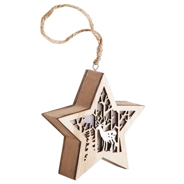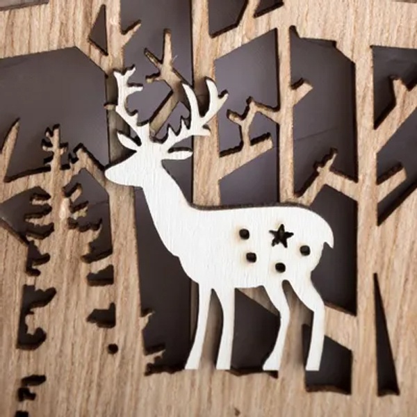 Декоративная деревянная игрушка с встроенной светодиодной подсветкой на батарейках призвана создать уютную атмосферу и подарить ощущение праздника. Её деревянное оформление и тёплое свечение помогут уютно украсить ваш интерьер. Это также отличный вариант в качестве подарка для ваших близких или для интересного дополнения к вашему дому. Размеры этой прекрасной декоративной фигуры составляют 24x13x3,6 см.