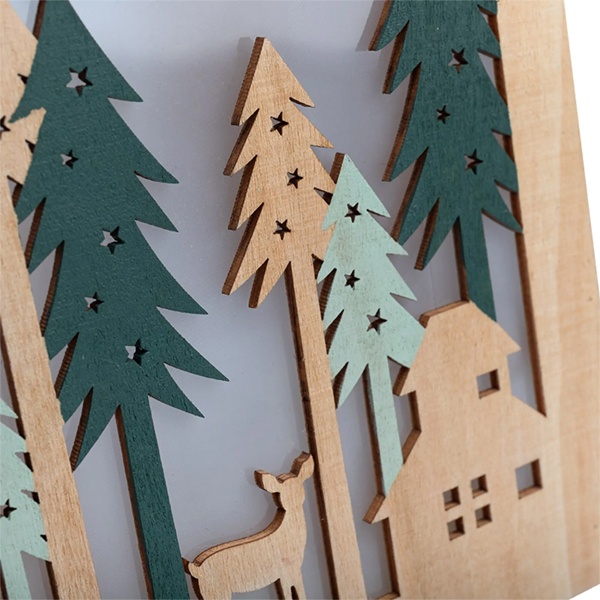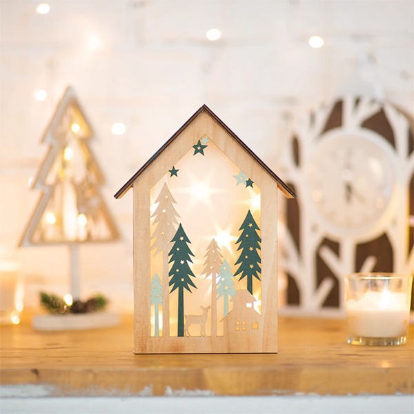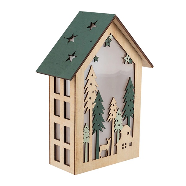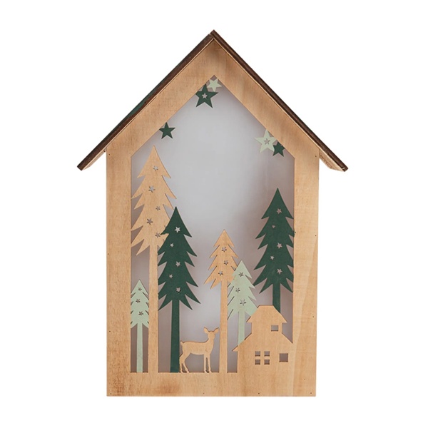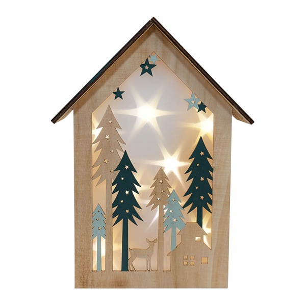 Деревянное елочное украшение Домик в лесу тёплого белого свечения, на батарейке 504-024