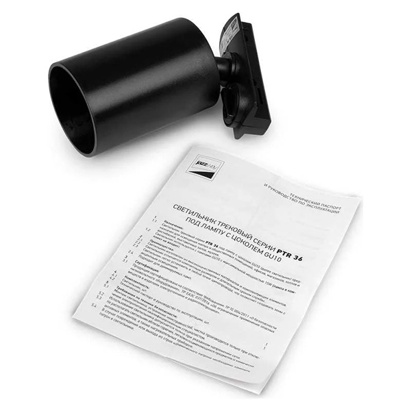 Черный цилиндрический поворотный прожектор PTR 36 под лампу GU10 для однофазного шинопровода ДжазВэй 5049222