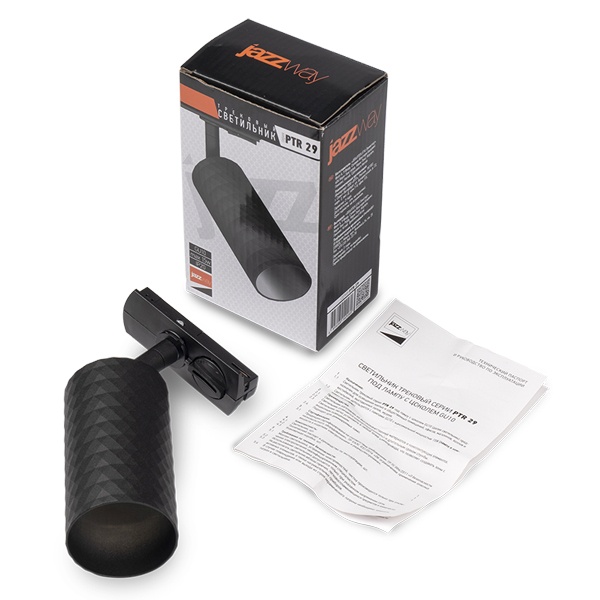 Черный цилиндрический поворотный прожектор PTR 29 под лампу GU10 для однофазного шинопровода ДжазВэй 5049260