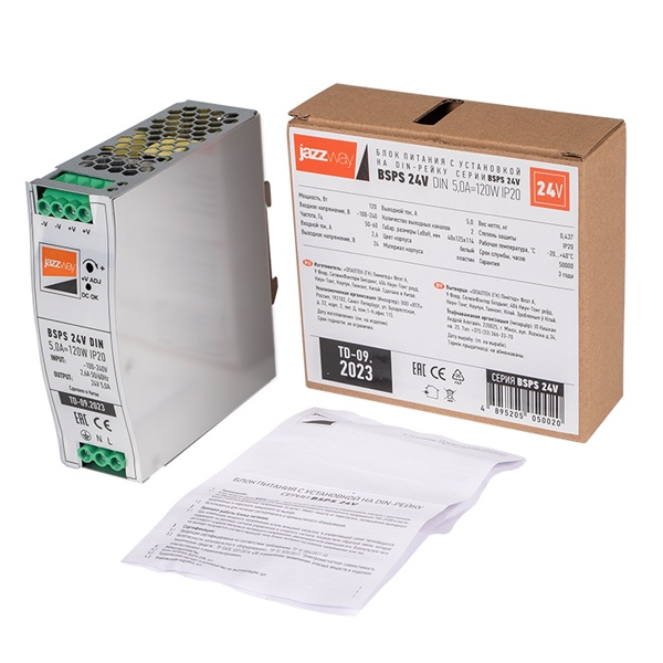 Адаптер питания 24 В на дин рейку, мощностью 120 Вт JazzWay BSPS 5050020