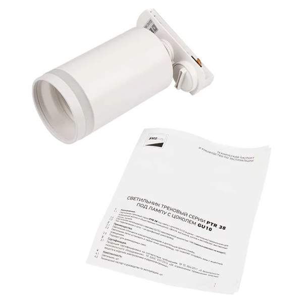 Белый цилиндрический поворотный прожектор PTR 38 под лампу GU10 для однофазного шинопровода ДжазВэй 5052253