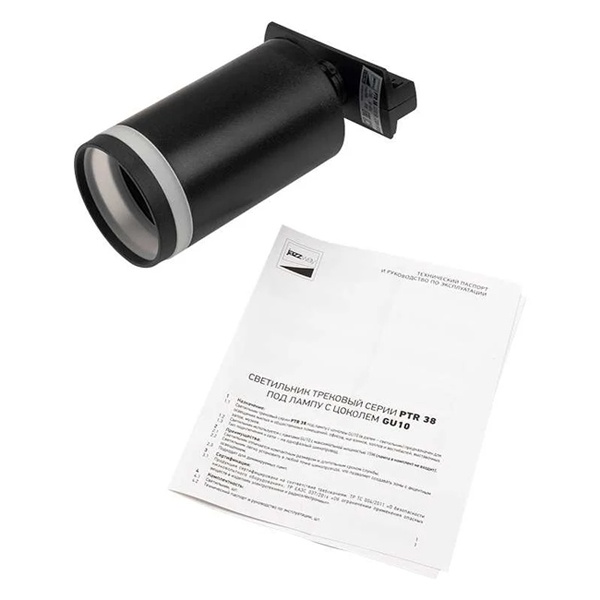 Черный цилиндрический поворотный прожектор PTR 38 под лампу GU10 для однофазного шинопровода ДжазВэй 5052277