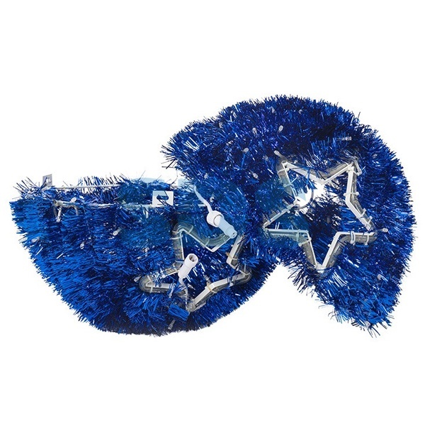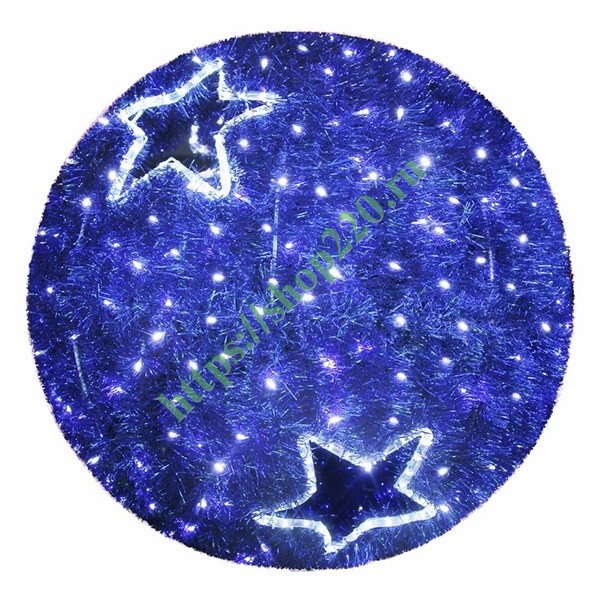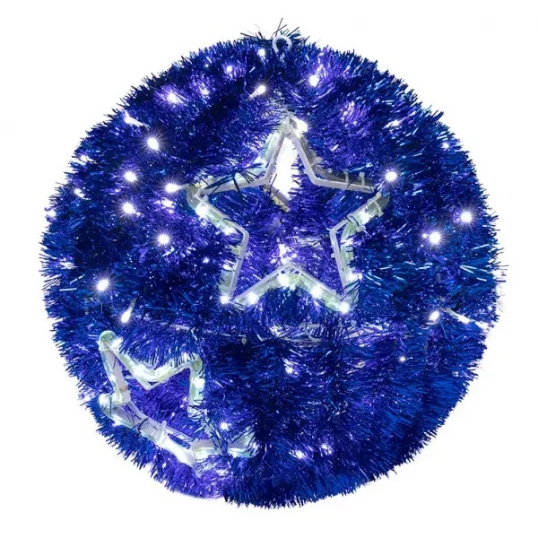 Описание: Новогодняя светодиодная фигура для улиц и помещений – в форме шара, покрытого синей мишурой. Внутренняя подсветка – светодиодный дюралайт. Свечение – синее.
