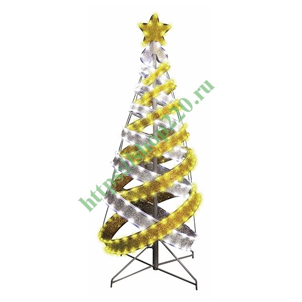 Описание: Объемная led фигура «Елка» состоит из металлического каркаса и закольцованных светодиодных лент с белыми и желтыми led элементами, пересекающимися между собой. Оборудована специальной удерживающей подставкой. Цвет свечения – белый/желтый.