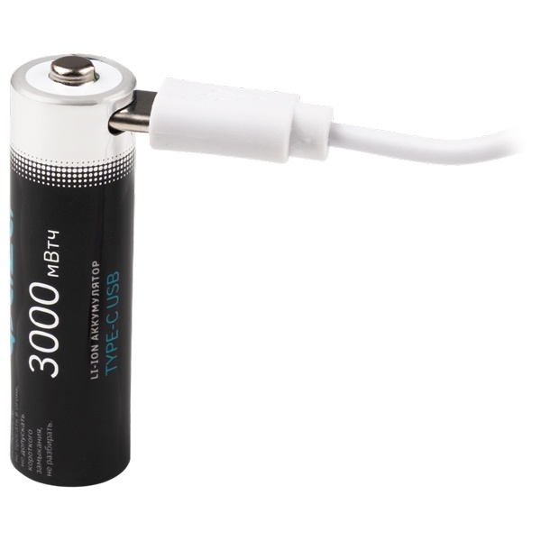 Литиевый заряжаемый источник питания типа АА напряжением 1.5В ёмкостью до 2000 мАч со встроенной зарядкой USB-C 5061576