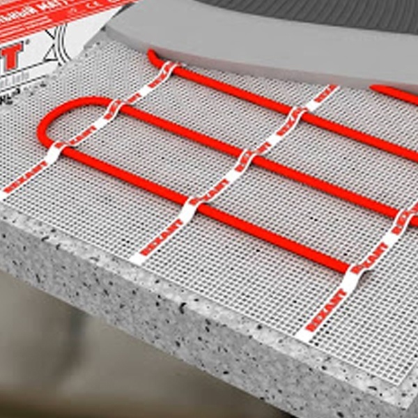 Нагревательные маты REXANT PRO с поверхностной мощностью тепловыделения 220 Вт/м2 изготовлены из тонкого двухжильного нагревательного кабеля и применяются в системах «Теплый пол» для комфортного подогрева помещений с покрытием пола из керамической плитки или другого аналогичного материала.Нагревательные маты устанавливаются под цементно-песчаную стяжку (толщина стяжки около 20 мм) или плиточный клей (толщина слоя плиточного клея 5-7 мм).