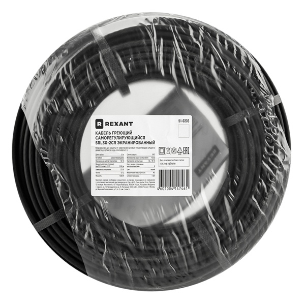 Саморегулирующийся нагревательный кабель REXANT мощностью 30 Вт на метр, длина бухты 50 метров 51-0203