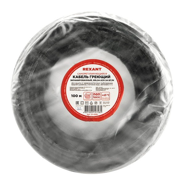 Саморегулирующийся нагревательный кабель REXANT мощностью 24 Вт на метр, длина бухты 100 метров 51-0205
