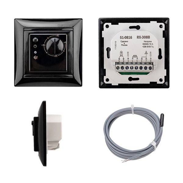 Терморегулятор механический RX-308B черный (совместим с Legrand серии Valena) REXANT