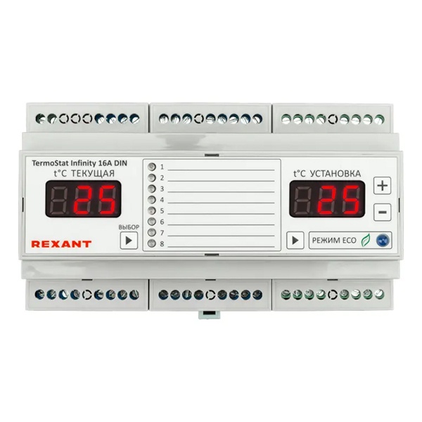 1 х терморегулятор TermoStat Infinity 16А8 х температурных датчиков Temp С-2Характеристики:- Температурый диапазон - от 16 до 45 °C
