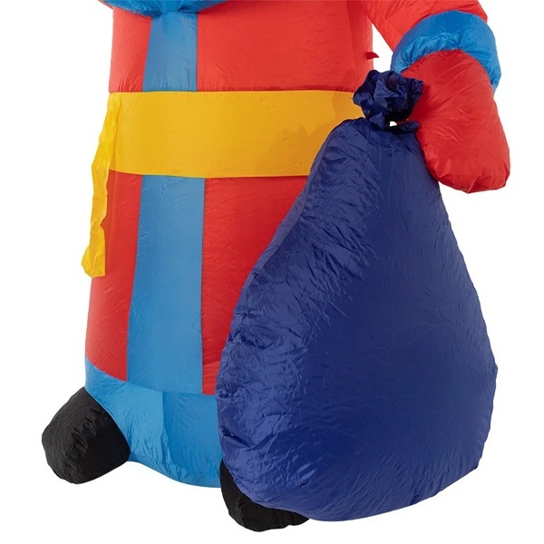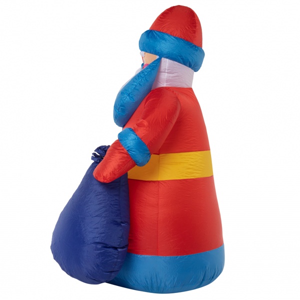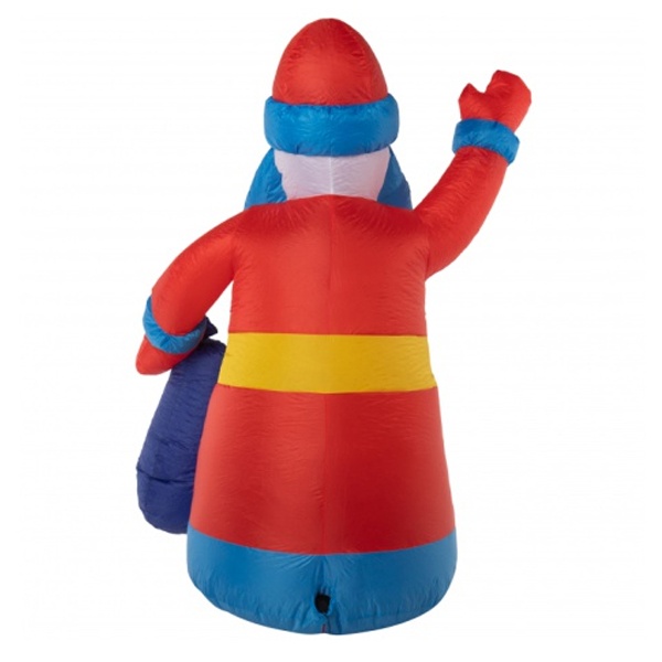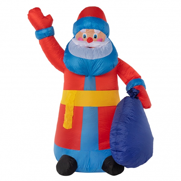 Надувная 3D фигура с внутренней светодиодной подсветкой «Дед Мороз с подарком» предназначена для осуществления световых дизайнерских решений, на время рождественских и новогодних праздников:- оформление мест, предназначенных для массовых новогодних гуляний;- установка у входов в кафе, рестораны, развлекательные комплексы;- размещение на придомовой территории.Описание: Надувная светодиодная фигура для улиц в формате 3D, изображающая Деда Мороза с посохом и мешком с подарками. Подсветка внутренняя, белая.Дополнительная информацияПроизводитель – компания Neon-Night.Высота фигуры – 1800 мм.Материал – синтетическое волокно (капрон).Комплектация:- блок питания;- светодиоды – 2 штуки;- компрессор;- крепежная платформа фигуры.Электротехнические характеристики:- мощность нагрузки – 18 Ватт;- драйверное подключение – в общую сеть переменного тока;- напряжение на выходе блока питания – 12 Вольт;- режим свечения – постоянный.Допустимый диапазон температуры окружающей среды – от -40 до +50 градусов Цельсия.Коэффициент защиты от пыли и влаги – IP65.