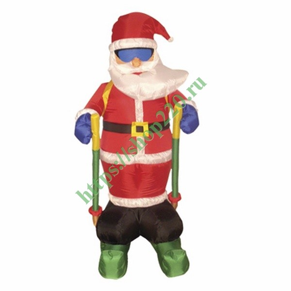Описание: Надувная светодиодная фигура для улиц в формате 3D, изображающая Деда Мороза на лыжах с лыжными палками и солнцезащитных очках.