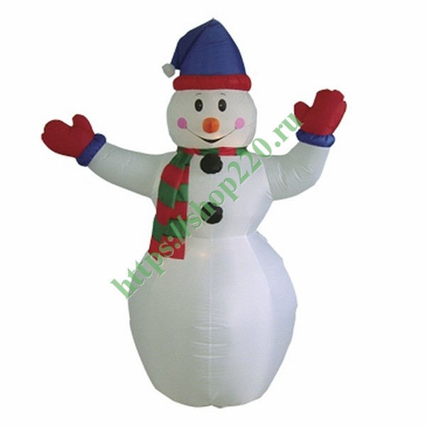 Описание: Надувная светодиодная фигура для улиц в формате 3D, изображающая Снеговика с шарфом, и поднятыми в радостном приветствии руками.