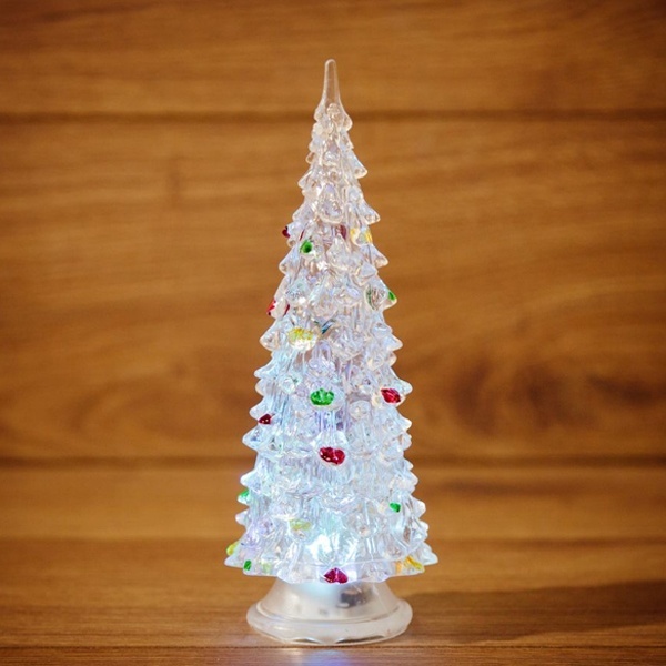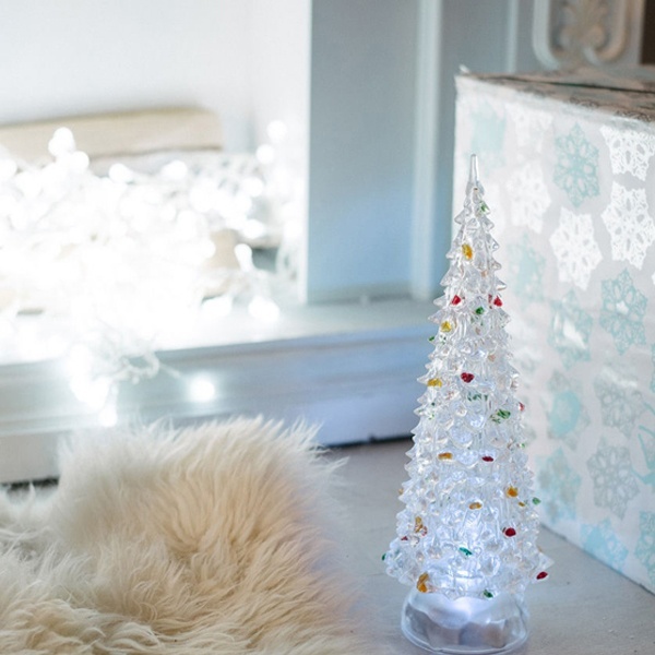 Описание: Новогодняя фигурка led в виде покрытой снегом елочки на подставке. Цвет светодиодной подсветки – RGB.