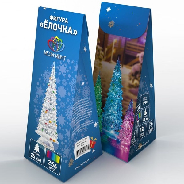 Фигура светодиодная "Елочка" предназначена для украшения жилых помещений с нормальным микроклиматом, не привязана к энергетическим сетям, устанавливается на любую поверхность интерьерного наполнения. Отличный подарок-сувенир на Рождество и Новый год, который доставит радость и ощущение праздника взрослым и детям. Установленная в детской комнате, новогодняя фигурка заменит ночник, будет напоминать ребенку о веселом празднике с подарками и хороводами, поможет спокойно заснуть. Описание: Новогодняя фигурка led в виде наряженной елочки на сферической подставке. Цвет светодиодной подсветки – RGB.Дополнительная информацияПроизводитель – компания Neon-Night.Высота новогодней фигурки – 250 мм.Материал – этиленвинилацетат, прозрачный полимер, упругий и прочный.Количество светодиодов – 1 штука.Источник питания – блок из трех батареек типа ААА (в комплектации). Расположение – в подставке.Электротехнические характеристики:- мощность нагрузки – 0,1 Ватт;- напряжение – 4,5 Вольта.Диапазон температур с полным сохранением рабочего потенциала – от 0 до +40 градусов Цельсия.Коэффициент защиты от пыли и влаги – IP20.