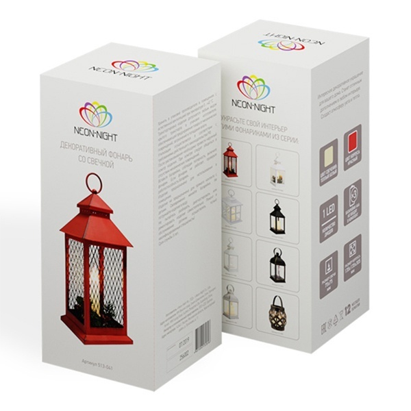 Фонарь декоративный 13.5х13.5х30.5см тепл. бел. со свечкой корпус красн. Neon-Night 513-041