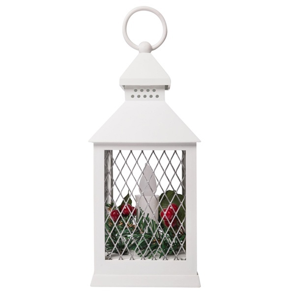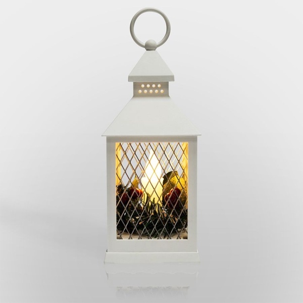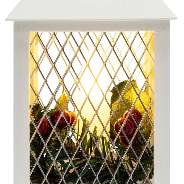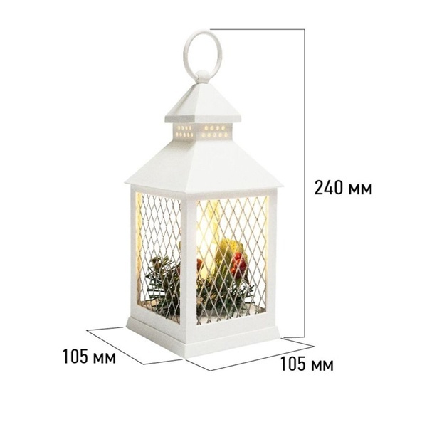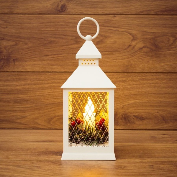 Декоративный фонарь со свечкой, белый корпус, размер 10.5х10.5х24 см, цвет ТЕПЛЫЙ БЕЛЫЙ