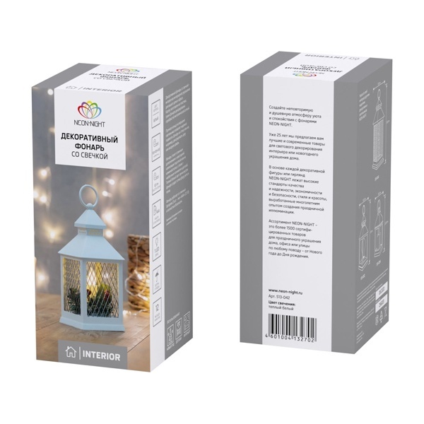 Фонарь декоративный 10.5х10.5х24см тепл. бел. со свечкой корпус бел. Neon-Night 513-042