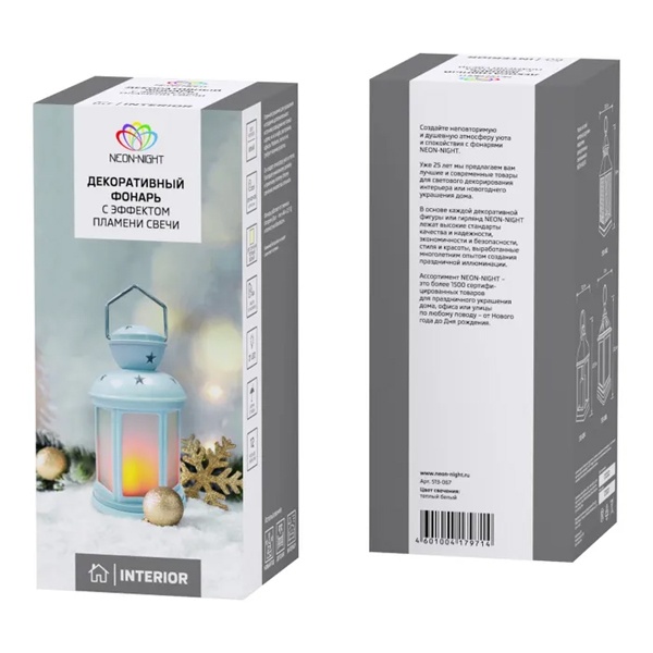 Декоративный фонарь 12х12х20,6 см, белый корпус, теплый белый цвет свечения с эффектом пламени свечи NEON-NIGHT