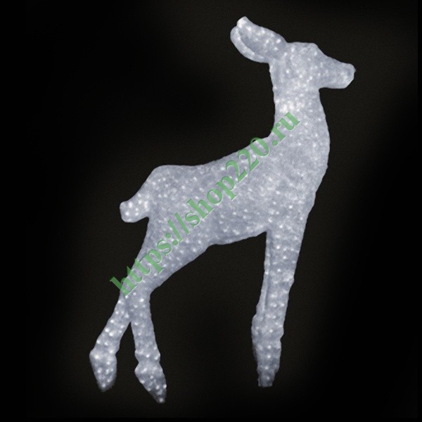 Описание: Объемная ростовая led-фигура, изображающая грациозное животное, вглядывающееся вдаль. Цвет – белый. Особенности производственной формы конструкции – композитный материал наносится на арматурный каркас с завершенной цепочкой элементов света.