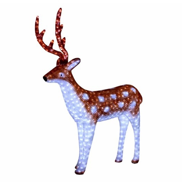 Изготовленная из акрила светящаяся светодиодная фигура для улицы «Олень папа коричневый» предназначена для устройства домашнего интерьера и создания определенной праздничной атмосферы, в помещениях дома, детских учреждениях и в местах массового отдыха людей на улице.