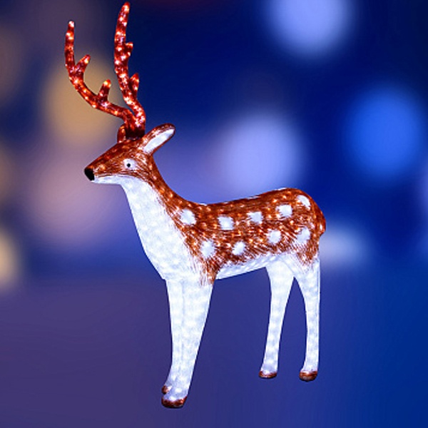 В корпус оленя вмонтировано 3500 светодиодов общей мощностью 140 Ватт с белым цветом свечения. Благодаря специальной технологии обработки акрила, имитируется шерстяной покров акриловой поверхности. Напряжение от сети подается через понижающий трансформатор.