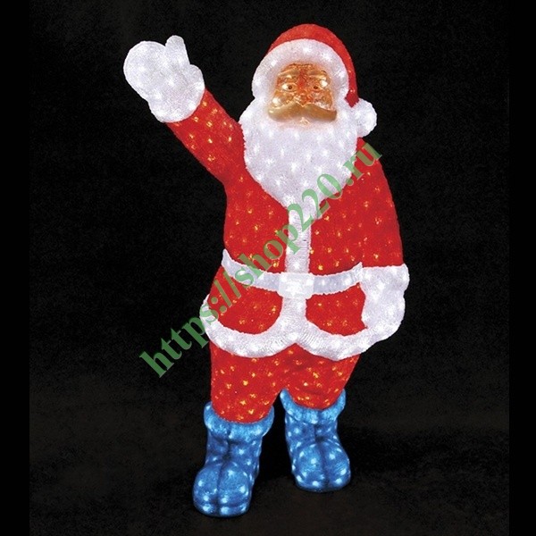 Описание: Объемная разноцветная ростовая led-фигура изображает Санта Клауса в приветственной позе. Конструкционные особенности – арматурный каркас и завершенная светодиодная цепочка покрыты слоем композитного полимера.