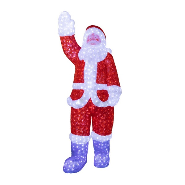Описание: Объемная разноцветная ростовая led-фигура изображает Санта Клауса в приветственной позе. Конструкционные особенности – арматурный каркас и завершенная светодиодная цепочка покрыты слоем композитного полимера.