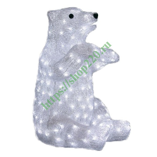 Описание: Внешний вид led-фигуры – сидящий белый медведь. Конструкция: каркас – металлическая арматура; наполнение – цепь полупроводниковых элементов света; оболочка – из акрила. Цвет – белый.