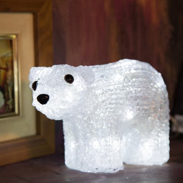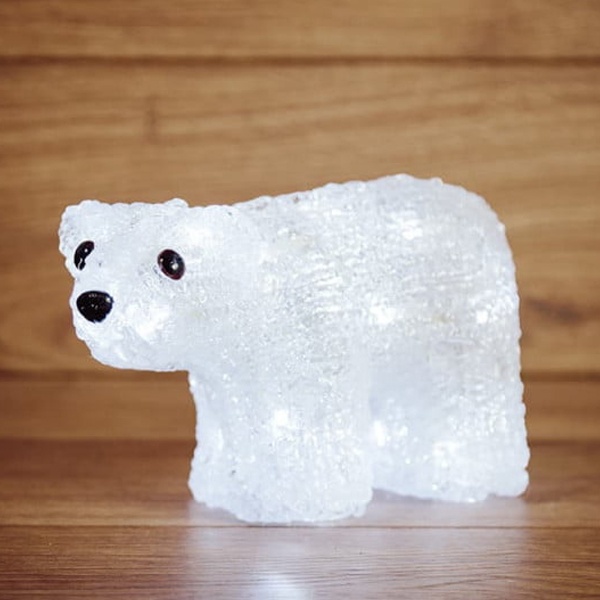 Акриловая светящаяся светодиодная фигура уличная «Белый мишка» предназначен для декоративного украшения домашнего интерьера создания определенной праздничной атмосферы, например в детских учреждениях, а также в местах массового отдыха в помещениях и на улице.