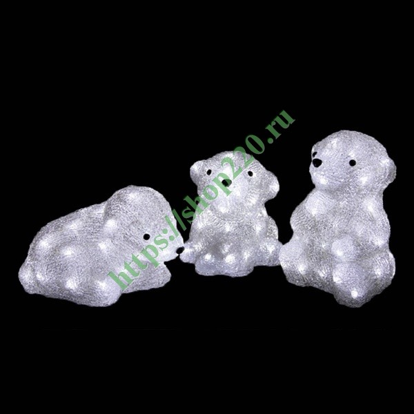 Серия, представляющая новогодние светодиодные фигуры «Медвежата» в количестве 3 шт. от производителя Neon-Night, предназначена для декоративного оформления домашнего интерьера и создания определенной праздничной атмосферы. Также светильники широко используются для украшения офисов, кафе, баров и ресторанов.