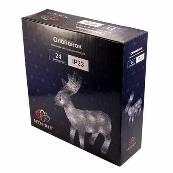 Акриловая светодиодная фигура "Оленёнок" 30х14х35 см, 4,5 В, 3 батарейки AA (не входят в комплект), 40 светодиодов, NEON-NIGHT