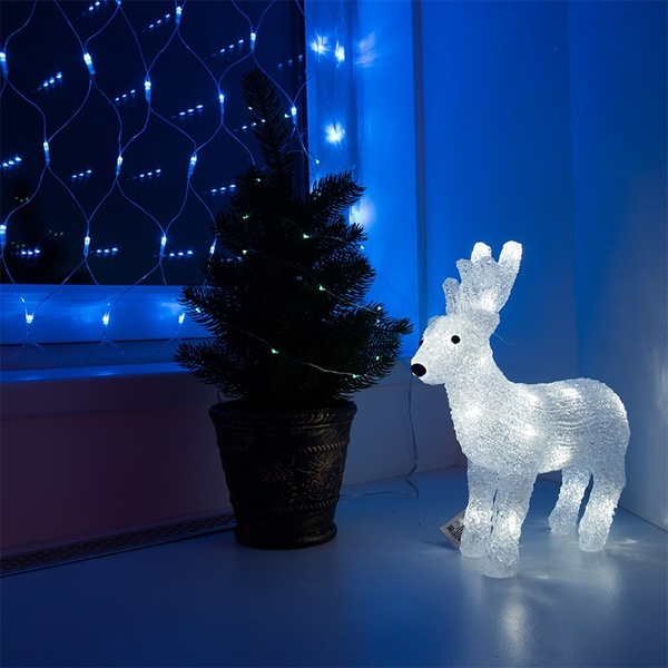 Описание: Новогодняя фигурка led в виде стоящего белого оленя. Цвет светодиодной подсветки – белый.